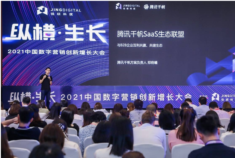 图8:腾讯千帆方案负责人郑晓曦先生发表《与B2B企业互利共赢,共建生态》的主题演讲