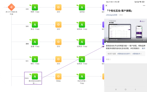 在下图的示例中,粉丝回复关键词Demo后,该品牌公众号向粉丝发送了关键词对应的物料连接,粉丝点击链接后便可以观看Demo视频。同时在互动的最后,品牌向其发送了留资表单——倘若该粉丝愿意深入了解品牌产品,便可以直接点击表单链接打开表单H5页面并留下资料,等待与品牌的SDR进行一对一的沟通。