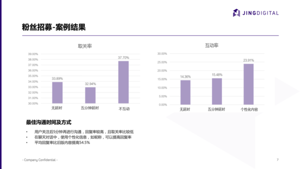 从这个案例我们可以得出结论:用户关注 NG注册下载 后互动效果更佳,另外,在会话中加上昵称等个性化信息,用户的平均回复率会比没有任何个性化信息时高54%,所以适当的沟通时机与互动内容是让粉丝愿意互动并保持粘性的有效方式。